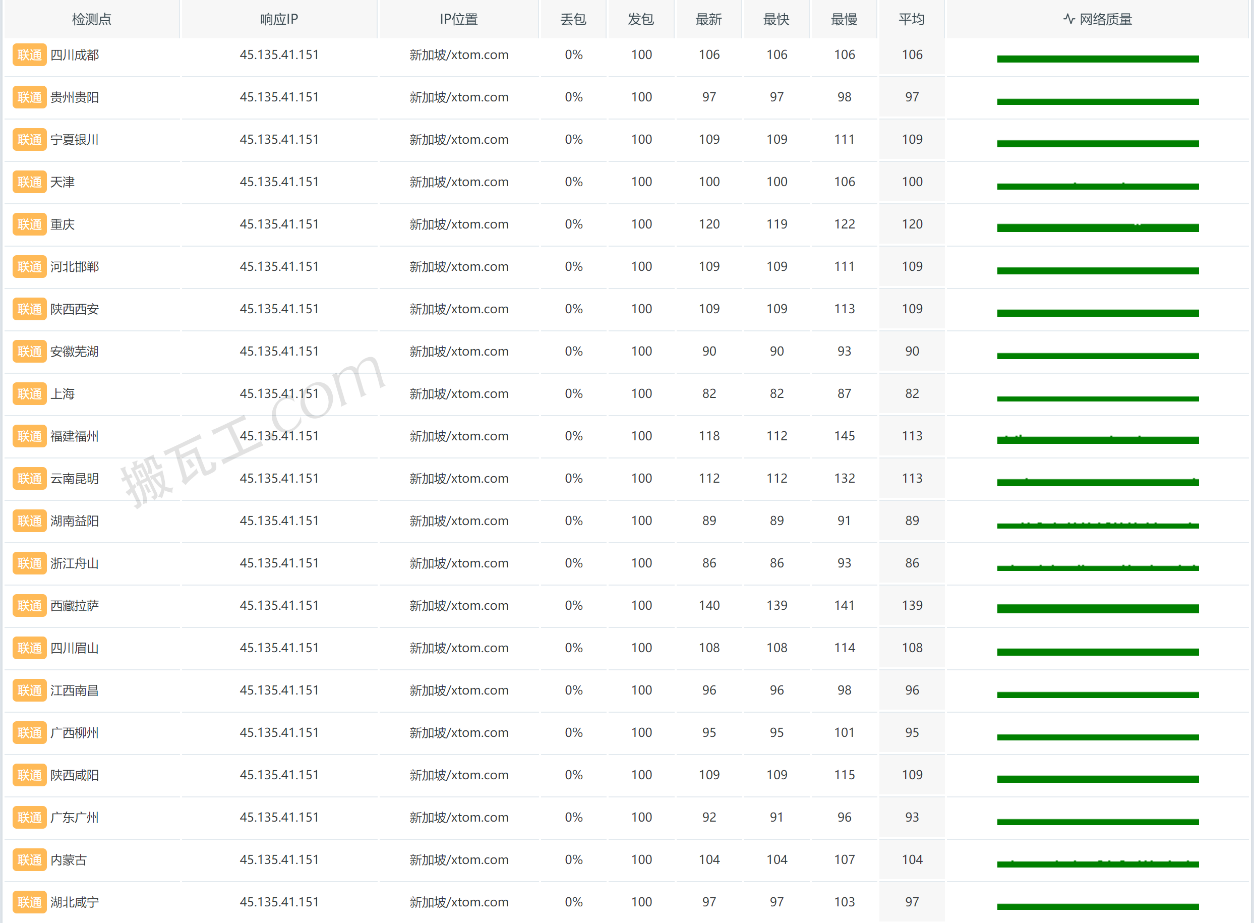 搬瓦工新加坡CN2 GIA套餐(SG - Singapore CN2GIA (SG_1))联通丢包响应表现测试结果: