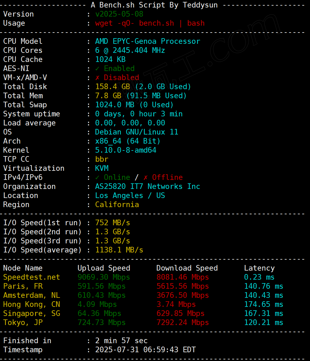 经过上面的测试可以看出搬瓦工洛杉矶DC9是个非常优秀的高端机房,作为搬瓦工在美西的重要机房节点,其速度延时表现和DC6一样优异。DC9满足了对硬件有较高要求的使用场景,对于需要跑项目,海外建站,生产力需求,搬瓦工的DC9全新AMD+NVMe平台更能胜任此类正式生产环境场景,兼顾了VPS服务器性能和优化路线,适合对网络稳定性,速度有较高要求,且要高性能机器的用户,总之搬瓦工洛杉矶DC9是和DC6一样非常推荐的优质机房,不管是从价格速度性能稳定性各个方面都是最具性价比之选。